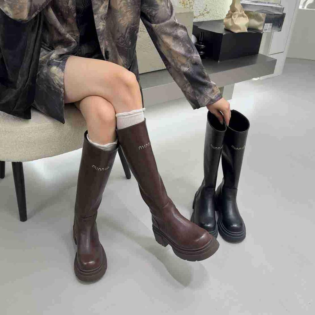 Thick-soled Small Man But Knee Boots Muffin Knight Boots Women's 2025 New Autumn and Winter Retro Thick-heeled Boots