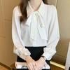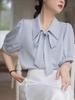 Elevate your professional wardrobe with this elegant Women's White Short Sleeve Chiffon Bow Blouse. Crafted from premium chiffon material, this blouse offers a luxurious and airy feel, perfect for staying comfortable yet polished in any formal setting. The solid pattern provides a clean and sophisticated look, while the square neckline adds a touch of modern style. Designed with a loose fit, it drapes beautifully on the body, ensuring ease of movement and a relaxed silhouette. The charming bow detail at the front completes the look, making it an ideal choice for interviews or a business ensemble.