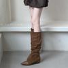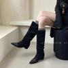 Pointed Boots Women's Inner Height Increase Retro 2025 New Thick Heel Pile Boots But Knee High Knight Boots