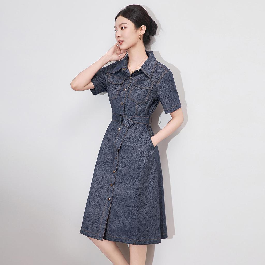 Indulge in high-end summer style with this exquisite Retro Jacquard Mid-Length Denim Dress. Crafted from premium denim, this dress is designed to define the waist, offering a flattering and slimming silhouette. The intricate jacquard pattern adds a touch of elegance and texture, making it a perfect choice for both casual outings and sophisticated gatherings. Enjoy the comfort of denim material while exuding confidence and effortless style in this standout summer piece.