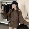 French Off-Shoulder Knitted Pullover Sweater and Waist-Cinching Skirt Set for Women - Autumn Style