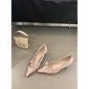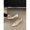 2025 New Year's Fashion Women's Shoes Pointed Head Shallow Mouth Pearl Buckle Type High Heel Thin Heel Commuter Small Leather Shoes Women's Single