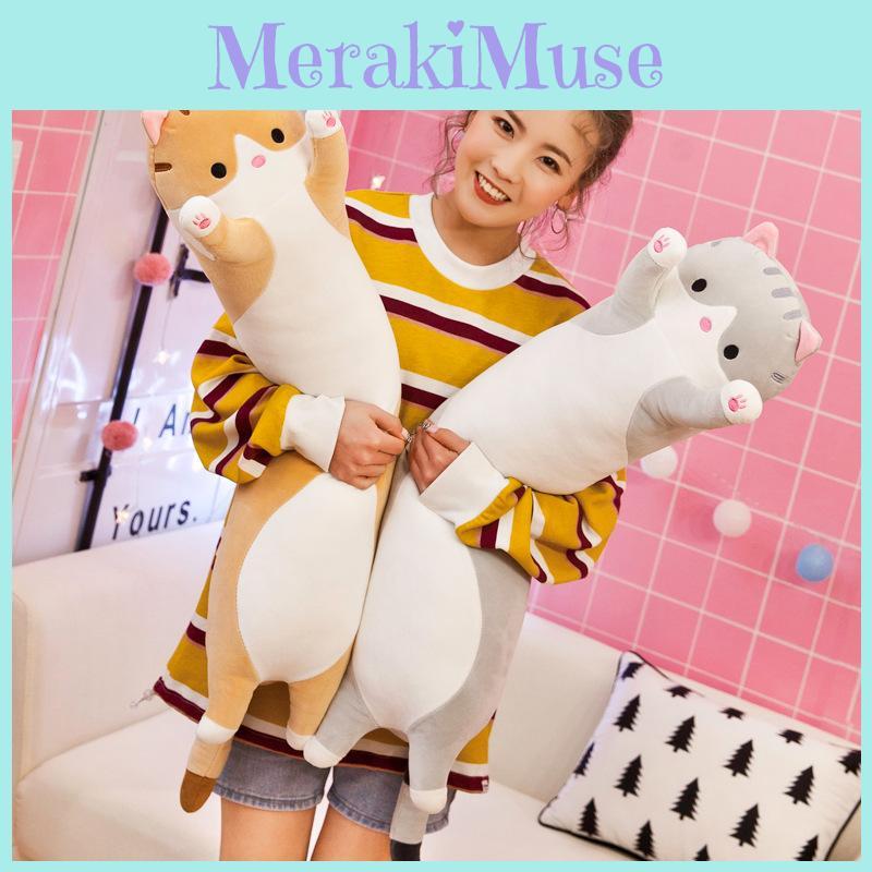 Cat Cartoon Long Pillow Animal Down Cotton Plush Stuffed Toy Holiday Decoration