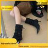 Suede Pointed Toe Stiletto Ankle Boots with Buckle - Women's Mid-Calf Ruched Skinny Heels