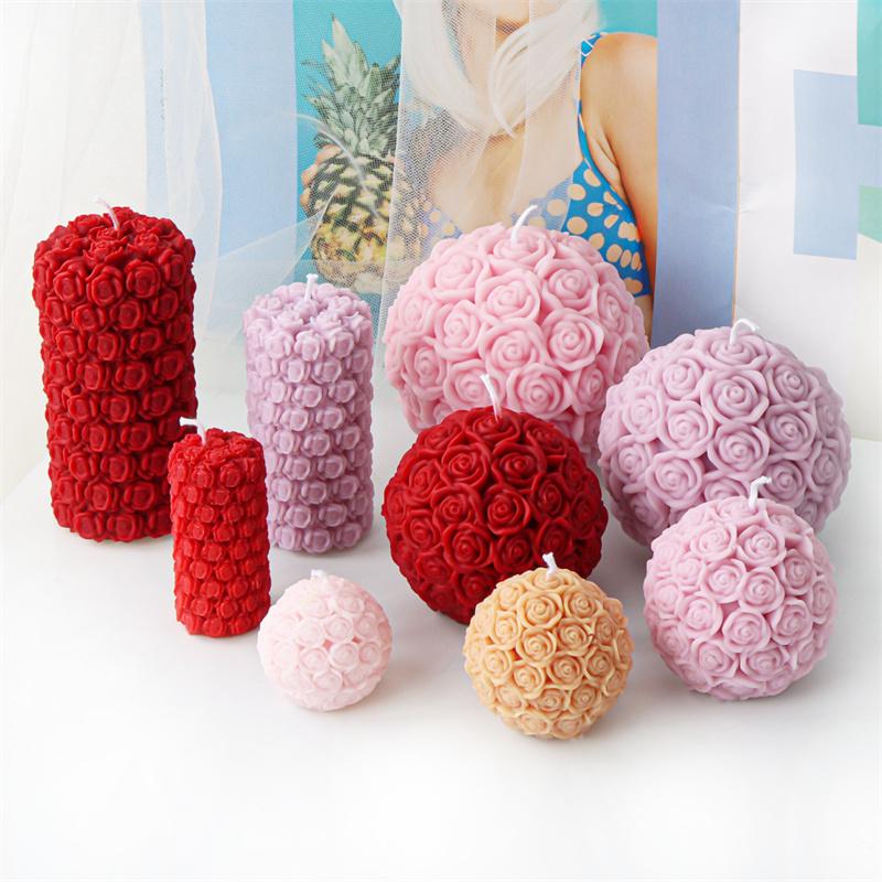 3D Rose Flower Ball Candle Silicone Mold DIY Gypsum Aromatherapy Resin Soap Mould Valentine's Rose Column Gift Home Decor