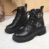 Large Size Double Belt Decorative Buckle Martin Boots Women's Autumn and Winter New Round Head Locomotive Boots
