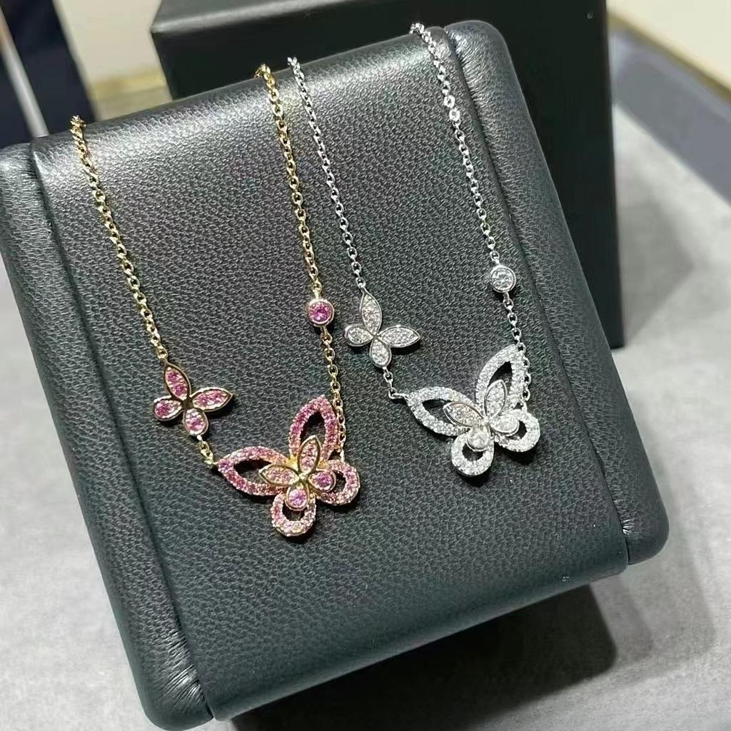 Ben V Gold Pink Diamond Phantom Butterfly Necklace Female Full Diamond Light Luxury Seiko Version Clavicle Chain Thick Gold 18k