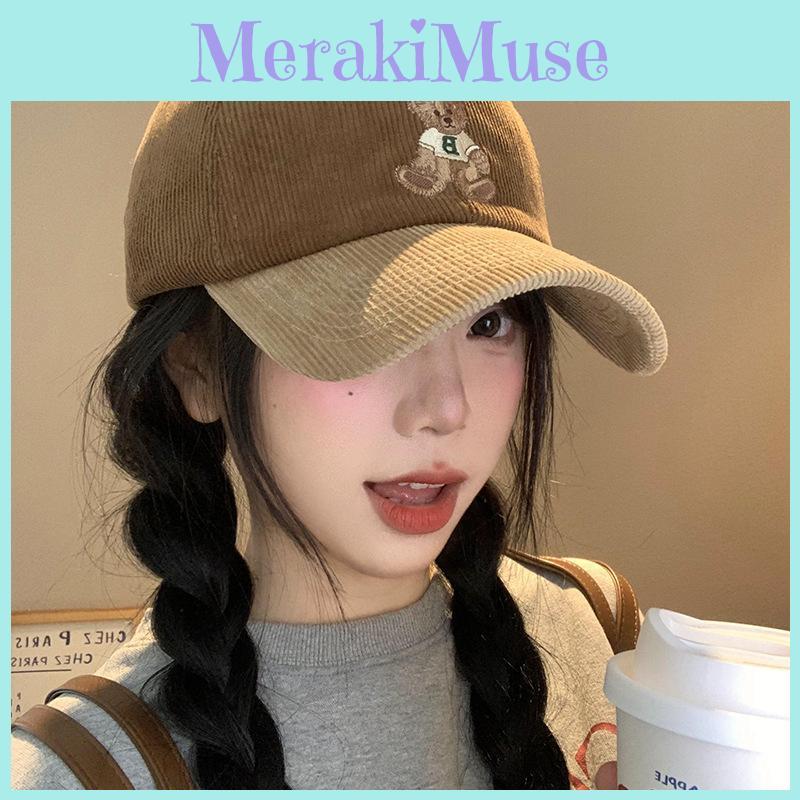 Corduroy Cozy Bear Embroidered Cap For Women In Stylish Colors For Winter Fall