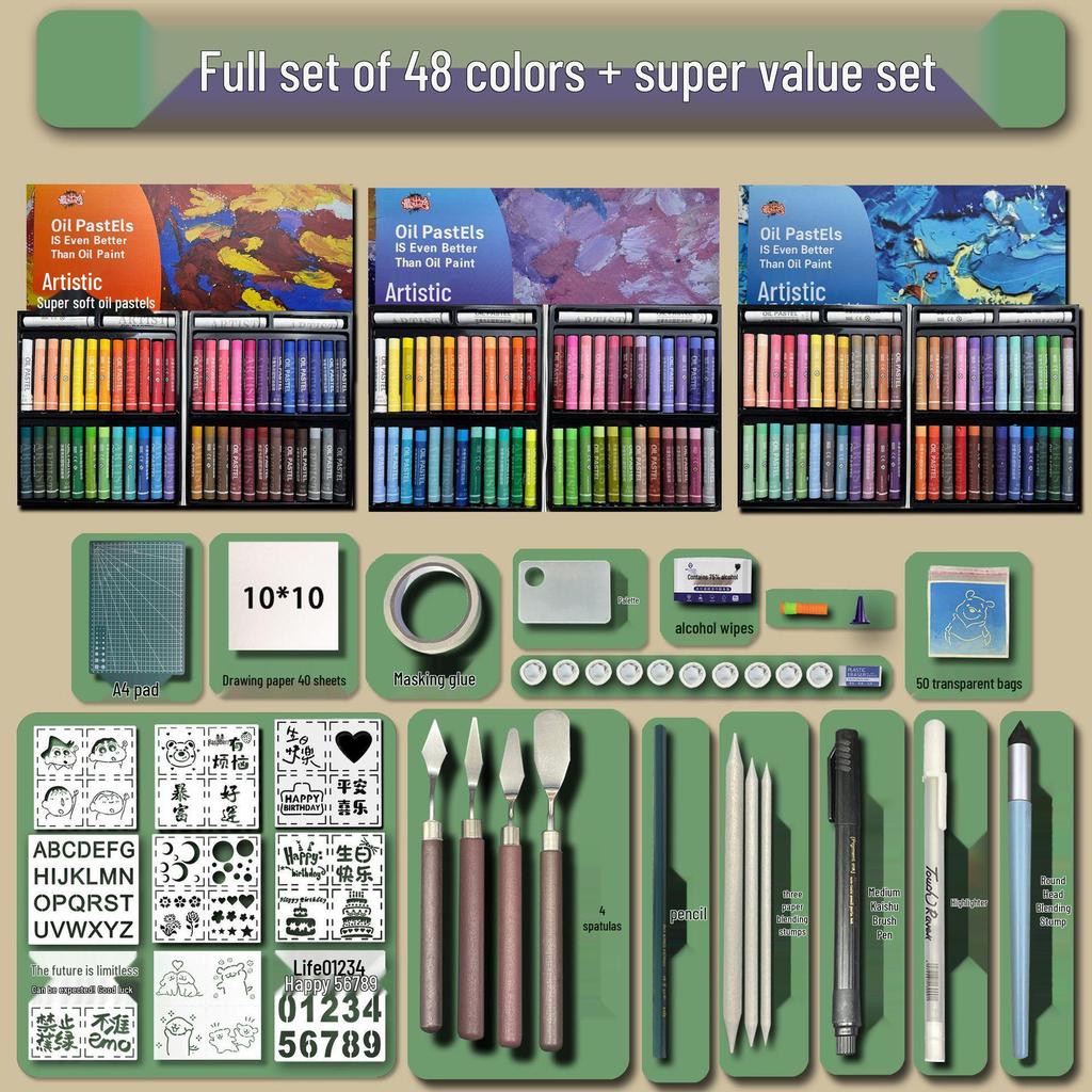 48-Color Super Soft Oil Pastels Set with Scraper - Child's Painting Kit
