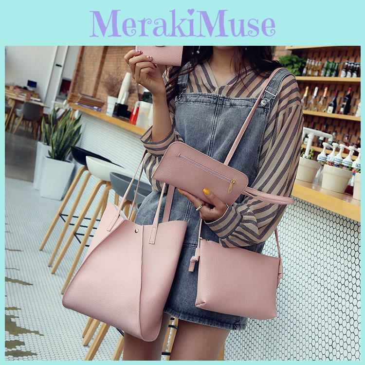 4pcs Leather Women Handbag Lady Shoulder Bag Tote Purse Messenger Set Satchel