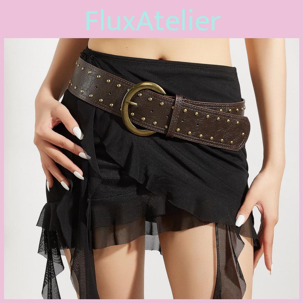 This fashion-forward belt features a 5.8cm wide faux leather strap reinforced with double topstitching and adorned with metal studs, supported by a durable alloy pin buckle. Its 105 cm length offers a versatile fit, ideal for casual or streetwear looks. Suitable for daily wear or dressing up outfits, it resists wear and retains its style with minimal maintenance simply wipe clean.