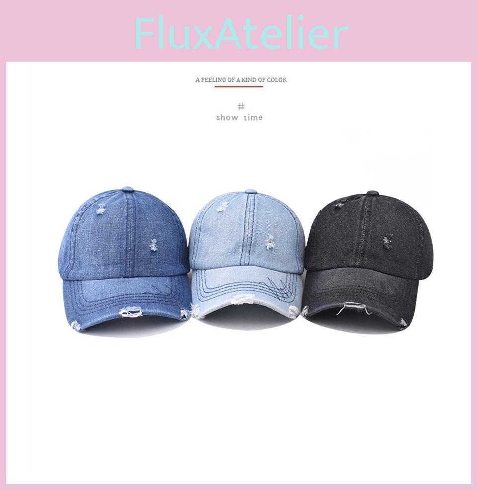Fashionable Damaged Design Neutral Sunshade Denim Baseball Hat For Outdoor