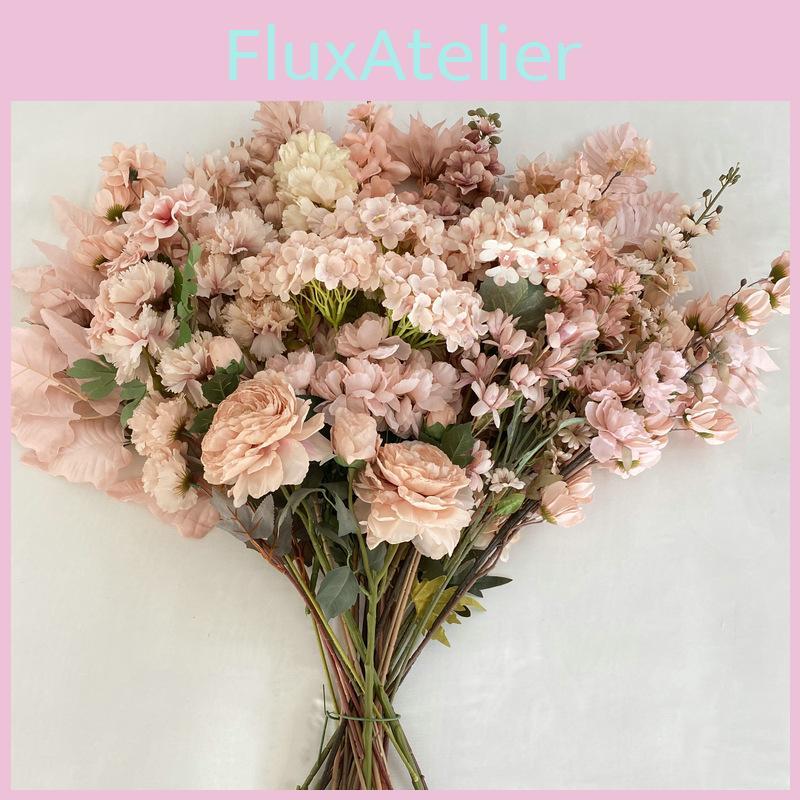 Wide Variety of Styles: Includes peonies, roses, hydrangeas, and other floral varieties in a cohesive dusty pink color scheme.