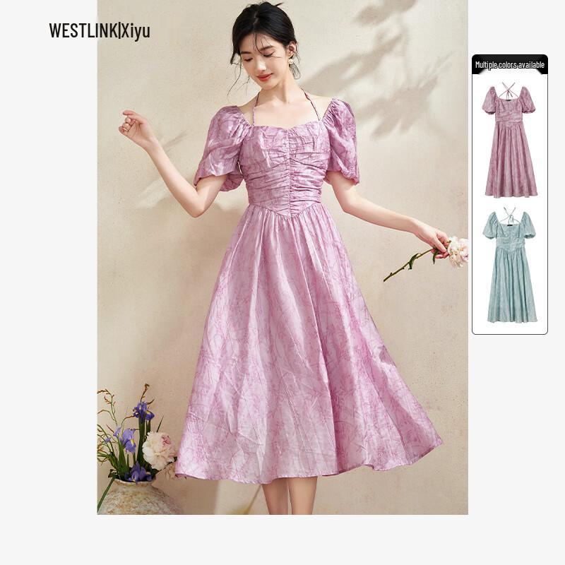 Xiyu French Romantic Pleated A-Line Maxi Dress