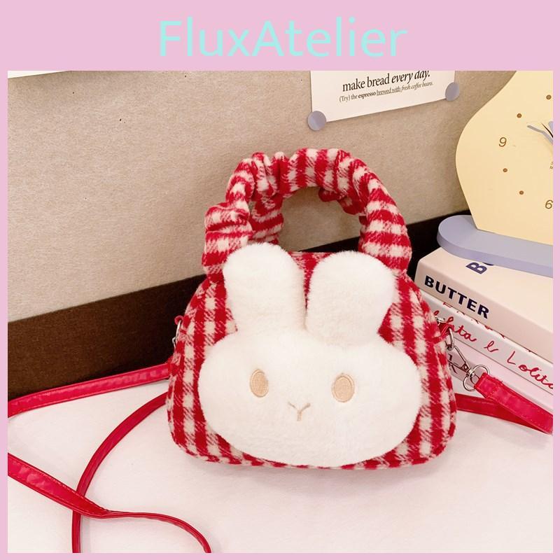 And Cozy Playful Plush Rabbit Shoulder Bag For Children With Trendy Checkered Design For Daily Use