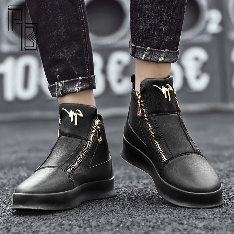 Trendy Men's Shoes, Summer New Leather Breathable High Top Shoes, Thick Soled White Casual High Top Board Shoes