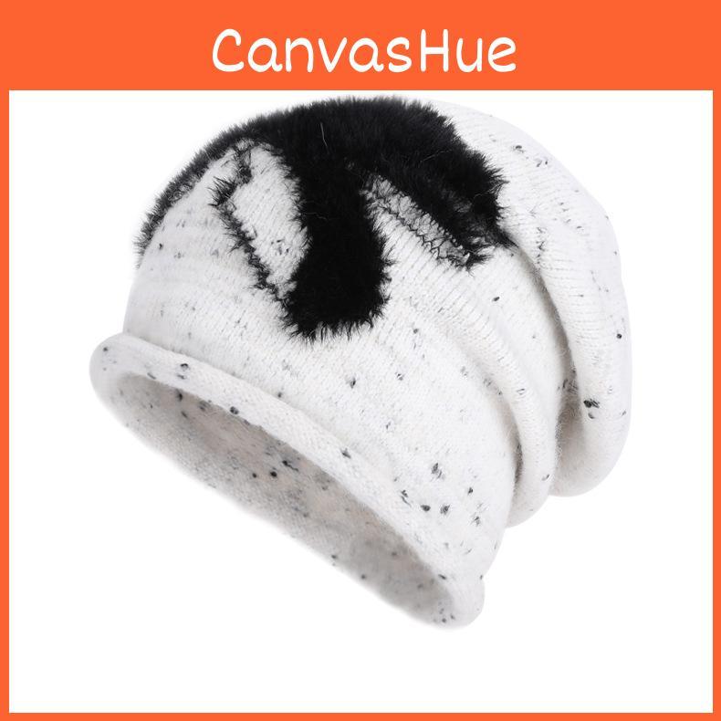 Splicing Fashion Plush Design Women Casual Knitted Hat For Autumn Winter And