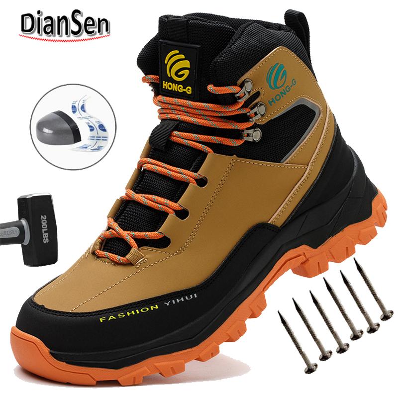 Men's Heavy-Duty Construction Boots - Waterproof Steel Toe Work Shoes | Anti-Smash Safety Toe | Breathable Non-Slip Outdoor Shoe