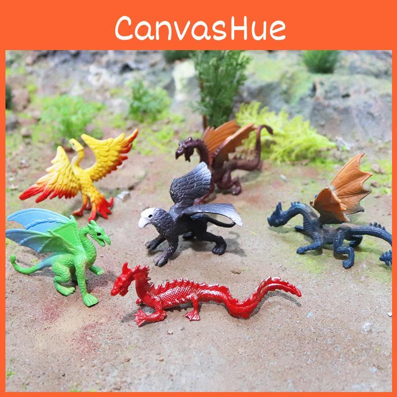 This miniature dinosaur and mythological creature set features static models crafted from durable plastic material. Each piece measures approximately 3 to 6 cm, ideal for display or collection purposes. The collection includes fantasy animals like dragons, phoenixes, and African wildlife, suitable for imaginative play or decorative use. Easy to clean with a damp cloth, these figures are perfect for children's playrooms or display shelves.