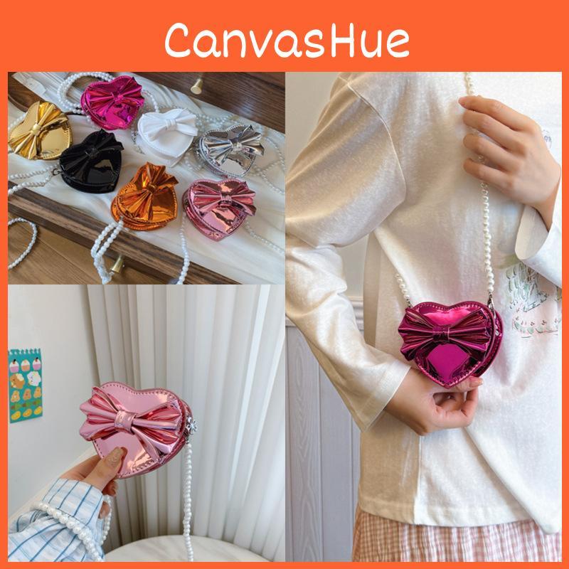 Mini Shaped Heart Bow Pearl Chain Bag With Zipper Closure For Daily Use Casual