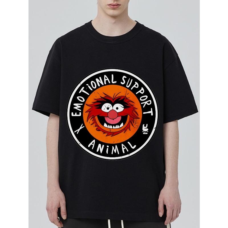 Crewneck T Shirt Black Emotional Support Animal Muppets Animal Print Casual Streetwear Unisex Top for Men Women Daily Wear Party Outfit