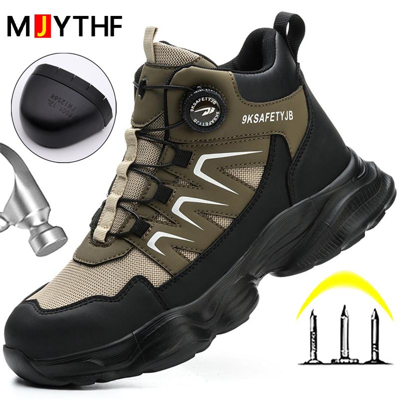 New Men Safety Shoes Rotating Button Work Sneakers Steel Toe Shoes Puncture-Proof Work Boots Protective Shoes Non-slip