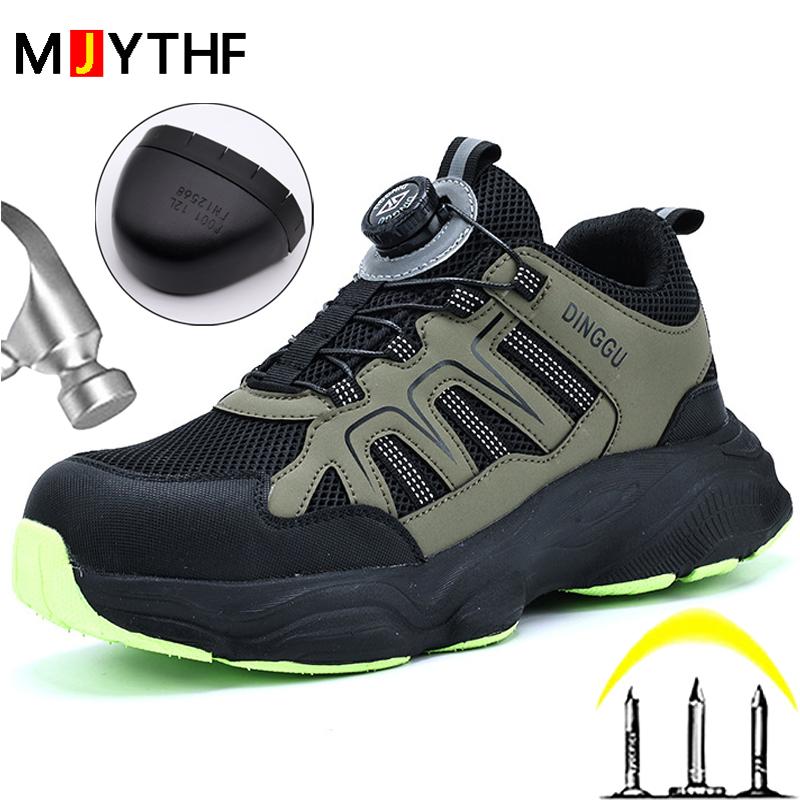 Rotating Button Men Sports Shoes Protection Boots Safety Shoes Men Anti-smash Anti Puncture Work Shoes Non-slip Steel Toe Shoes