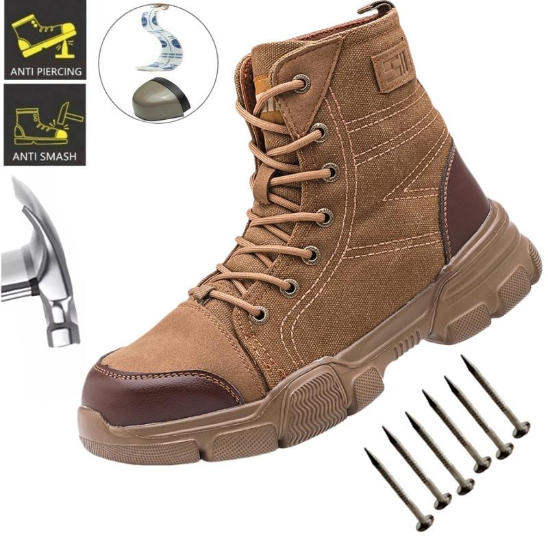 Warehouse, Mining Canvas Safety Work Boots Men Steel Work Sneakers Indestructible Shoes Anti-smash Anti-puncture Work Shoes Male