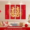 Bridal Bedroom & Living Room Decoration Set: Double Happiness Wall Stickers for Newlyweds