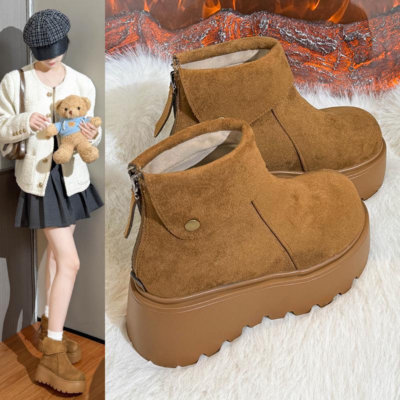 Thick Bottom Fleece Lined Winter Snow Boots Women's Casual Short Boot Warm Plush Rubber Outsole Round Toe Korean Style Boot