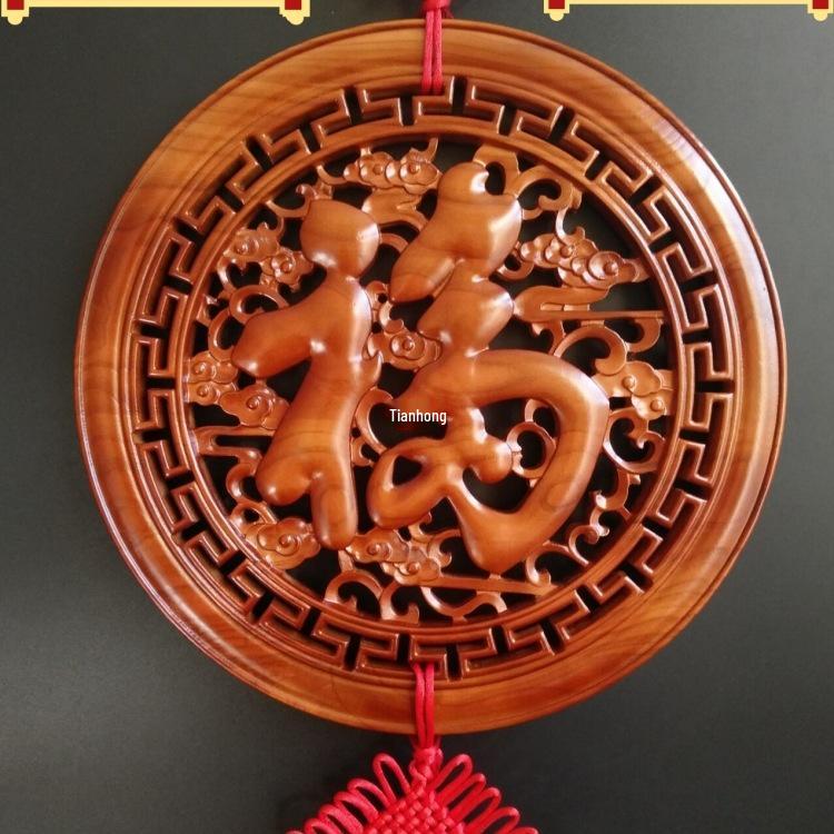 Large Peach Wood Chinese Knot Pendant with Fu Character for Living Room, Entryway, or Foyer Decoration - New Year Gift