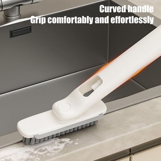 This three-in-one design combines spray scrubbing, scraping, and clamping functions, making it versatile for various cleaning needs such as bathroom gaps, tile floor seams, and toilet edges.