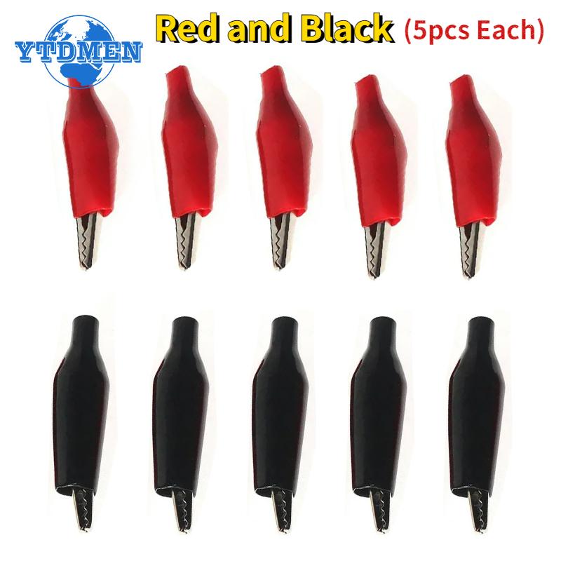 10PCS/2 Colors Crocodile Type Clip 24*28mm Black Red Soft Plastic Coated DIY Electronic Testing Probe Mini Alligator Test Clips