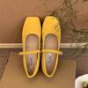 Inner Heightened Square Toe Shallow Single Shoes Women's Spring New Retro Fairy Gentle Beanie Shoes Women's Flat Yellow Scoop Shoes