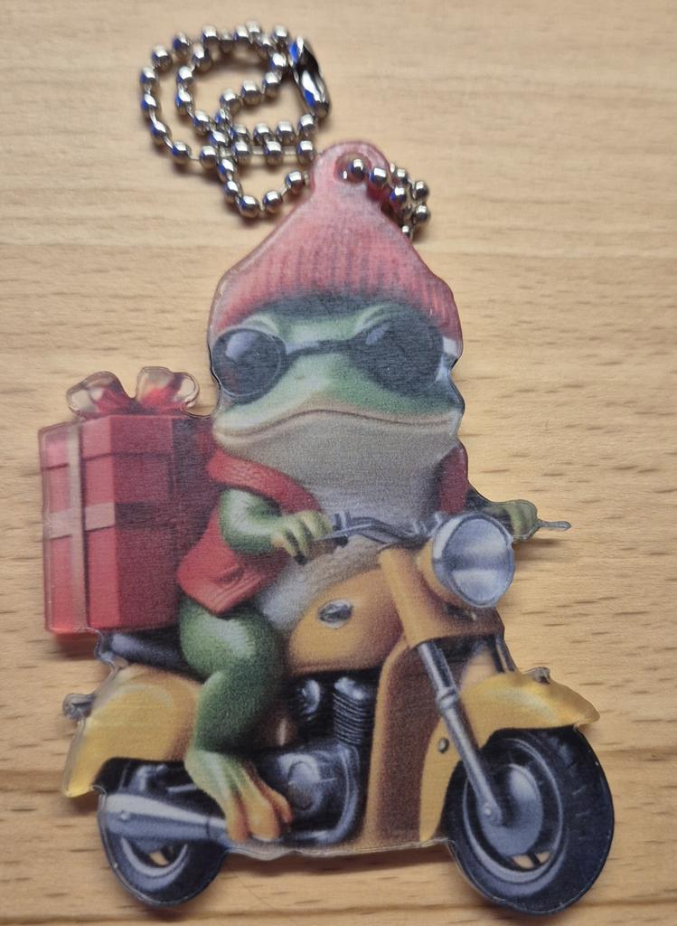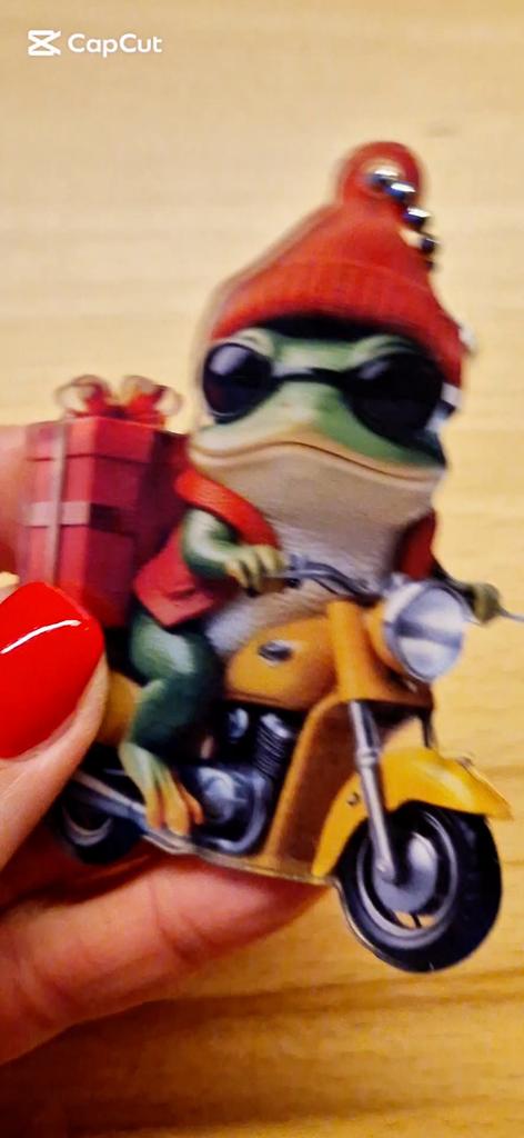 🎄 The pendant in the shape of a frog riding a motorcycle was delivered to me in Austria after three weeks of delivery, excellently packaged and consolidated.. 🎄 The funny product is made of acrylic and is suitable both for hanging on the Christmas tree and for being tied to gifts. I find the pendant funny and really like to recommend it 👍! Music 🎶 from Capcut pro