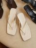 2025 Spring and Summer New Square Head Sheepskin Kitten Heel Pinch Sandals Women's Mid-heel Flip-flops Half Drag
