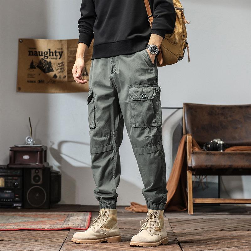 Casual Leggings Men's Pure Cotton Wear-resistant Multi-bag Pants Solid Color Thin Autumn and Winter Men's Pants Commuter Versatile Overalls