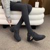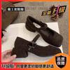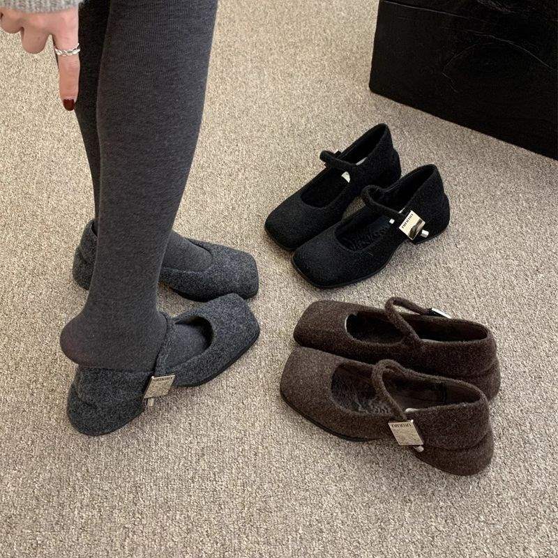 Gray Mary Jane Fluffy Shoes Women's Winter Wear New French Retro Woolen Thick Heel Single Shoes Women's Velvet High Heels