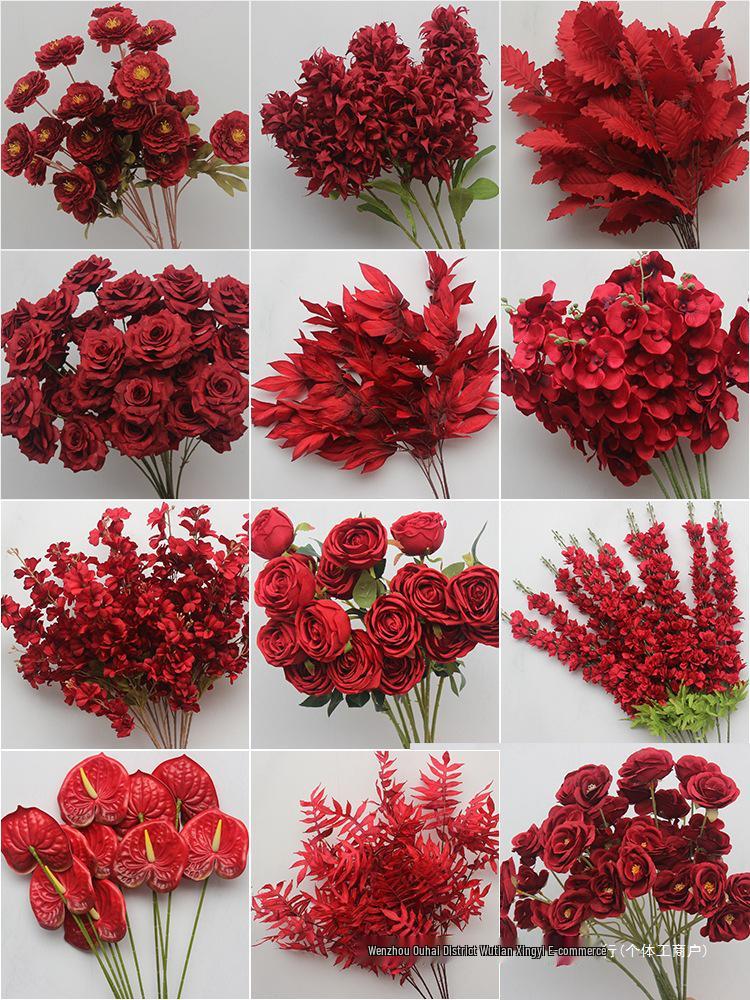Wine Red Artificial Floral Bouquet - Chinese Wedding & Engagement Ceiling Decoration