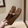 Grape Home~ Cowhide Edition Sydney Weekend~ Washed Horse Leather Pattern British Style Bow Doudou Loafer Leather Shoes Women