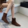 New Spot 2025 Korean Retro Suede Thin Boots Heightened Square Head Short Boots Women's Versatile Autumn and Winter New Women's Boots