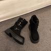 Vintage Platform Thick Bottom Women Western Cowboy Boots Fashion Belt Buckle Height Increase Female Mid Calf Booties