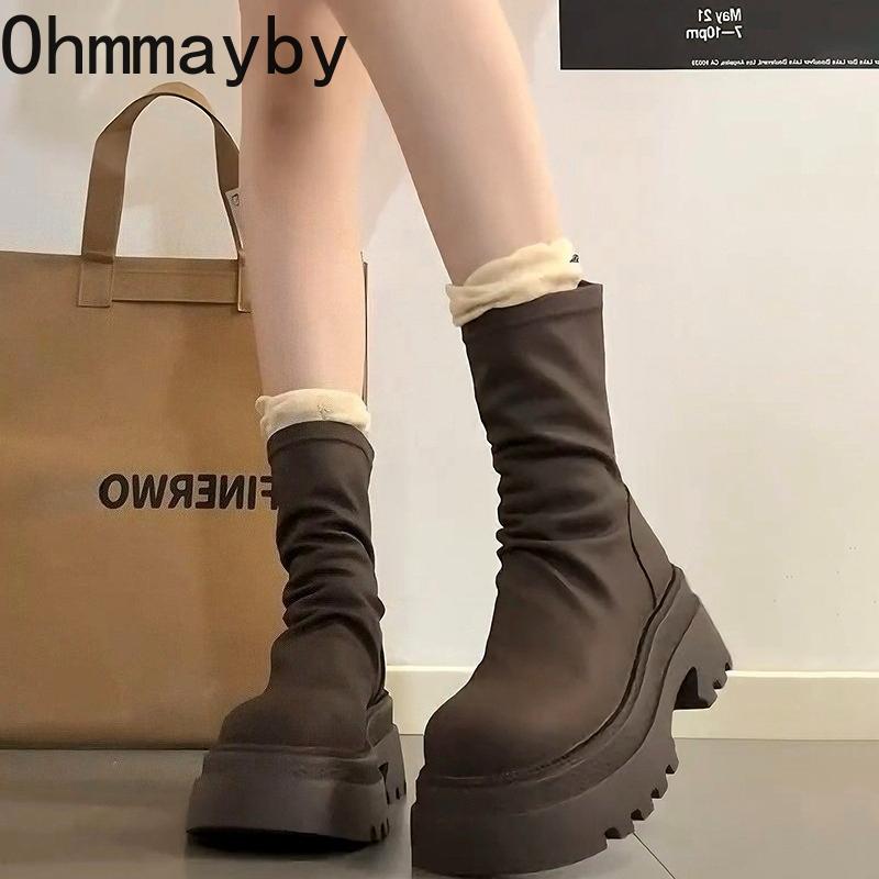 Autumn Winter Slim Women Ankle Boots Female Platform Thick Bottom Short Booties De Mujer