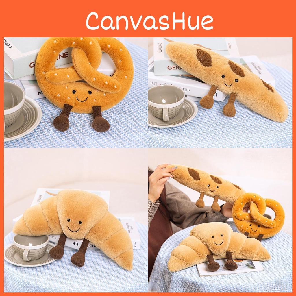 Each plush is made from soft, short-pile plush material filled with high-quality PP cotton, ensuring that they are not only cuddly but also durable.The inviting textures and vibrant colors of the pretzel, baguette, and croissant will captivate children's imaginations, encouraging interactive play and creative storytelling.