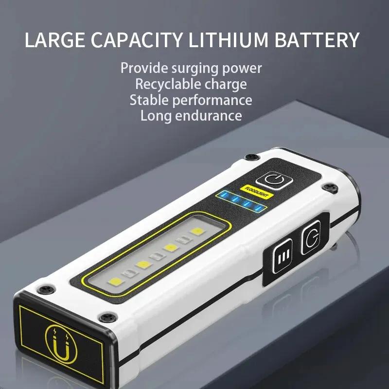 NEW Design Super Bright LED Source Work Lamp with Magnet Alarm SOS Key Chain Power Bank Waterproof Emergency Flashlight