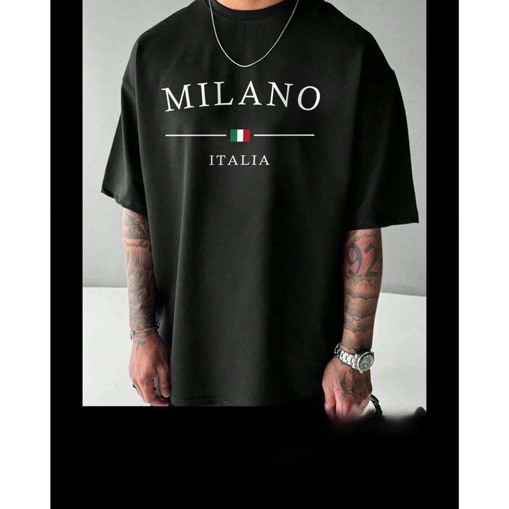 Unisex's Summer 100 Cotton Fashionable Casual Loose Plus Size MILANO ITALIA Pattern Printed Sports Round Neck Short Sleeved T-shirt