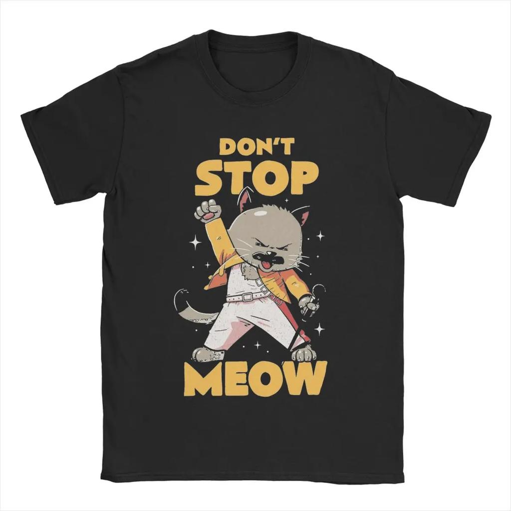 Don't Stop Meow Singing Cat Rock Band T Shirts for Men Pure Cotton T-Shirt O Neck Tee Shirt Short Sleeve Clothing Gift Idea