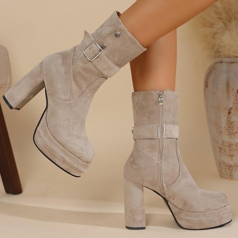 Sexy Super High Heel Platform Boots Women Black Apricot Faux Suede Ankle Boots Woman Buckle Detor Zipper Up Booties Ladies