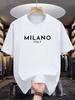 Summer Men's 100% Pure Cotton Casual Loose and Fashionable MILANO ITALY Letter Printed Round Neck Short Sleeved T-shirt Top