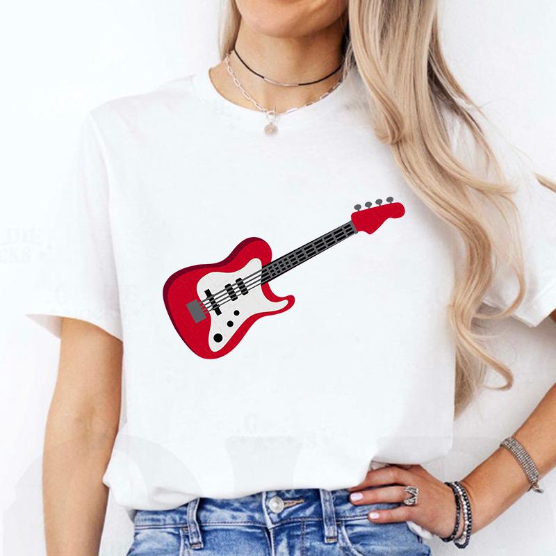 Aesthetic T-shirt Women Clothing Fashion Guitar Graphic Y2k Tops Harajuku Comfortable O Neck Short Sleeve Female Tees Shirt